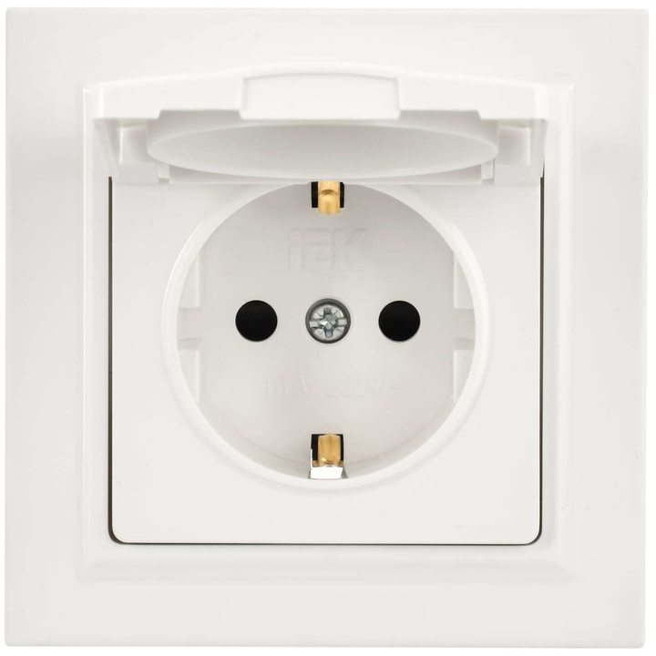 BRITE Розетка 1-местная с заземлением с защитными шторками и крышкой 16А IP44 в сборе РСбш10-3-44-БрБ белый