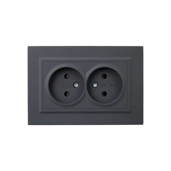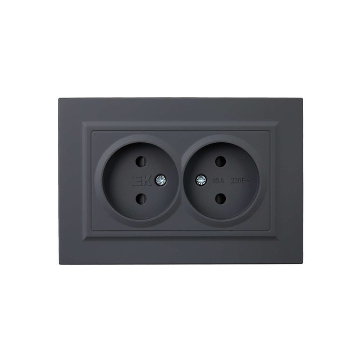 BRITE Розетка 2-местная без заземления с защитными шторками 10А в сборе РСш12-2-БрГ графит IEK