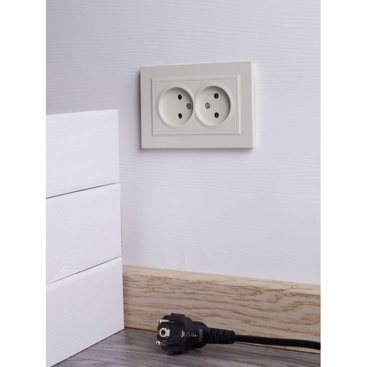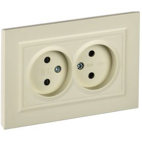 BRITE Розетка 2-местная без заземления с защитными шторками 10А в сборе РСш12-2-БрКр бежевый IEK