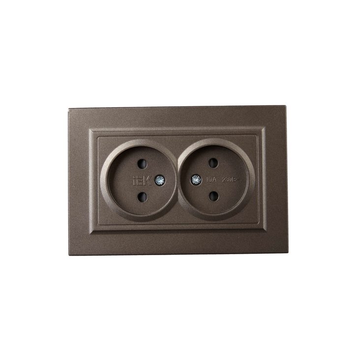 BRITE Розетка 2-местная без заземления с защитными шторками 10А в сборе РСш12-2-БрТБ темная бронза IEK