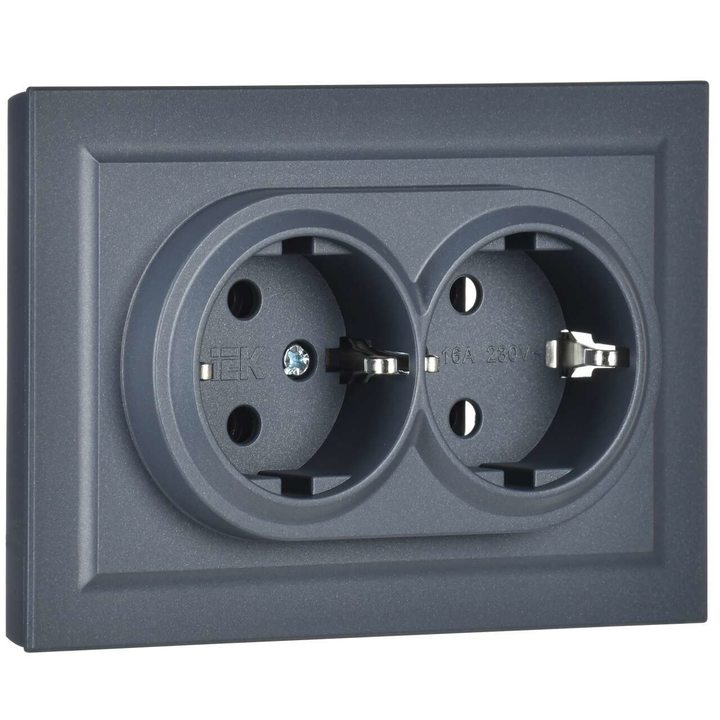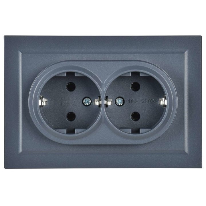 BRITE Розетка 2-местная с заземлением без защитных шторок 16А в сборе РС12-3-БрМ маренго IEK