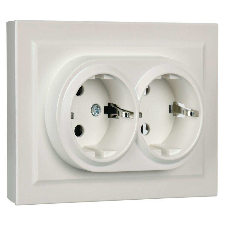 BRITE Розетка 2-местная с заземлением без защитных шторок 16А в сборе РС12-3-БрЖ жемчуг IEK