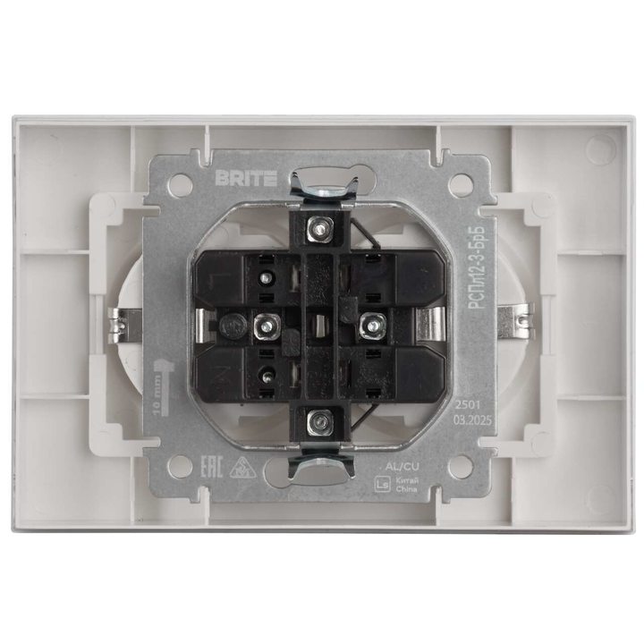 BRITE Розетка 2-местная с заземлением без защитных шторок плоская 16А в сборе РСПл12-3-БрБ белый IEK