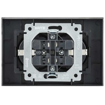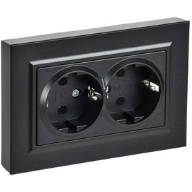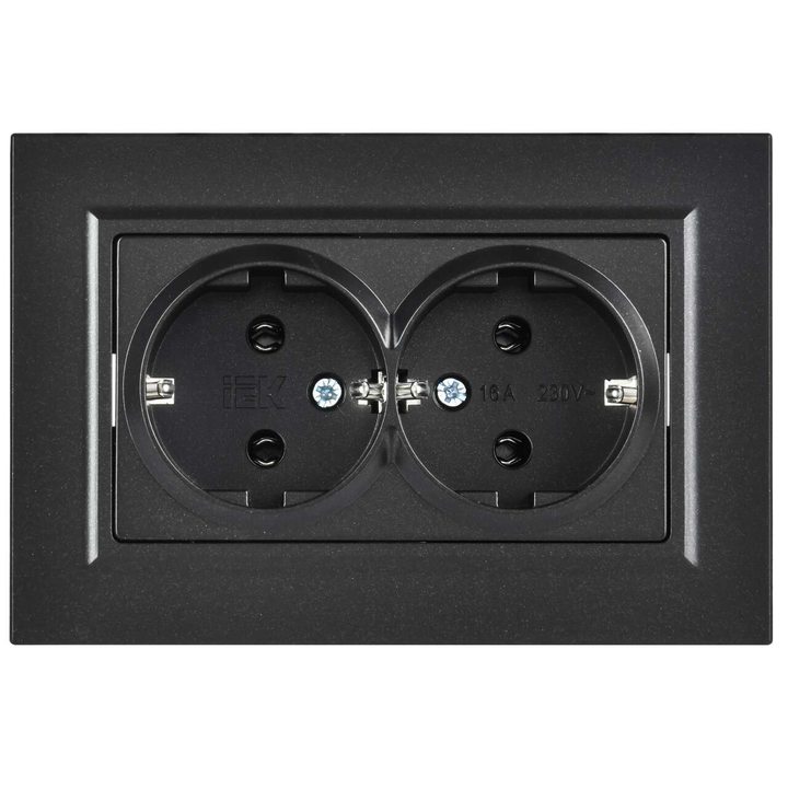 BRITE Розетка 2-местная с заземлением без защитных шторок плоская 16А в сборе РСПл12-3-БрЧ черный IEK