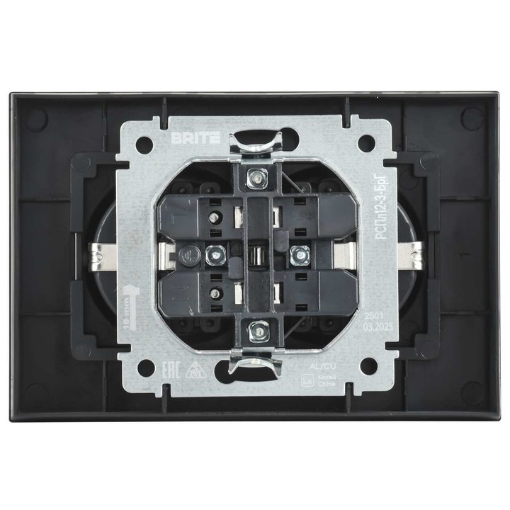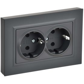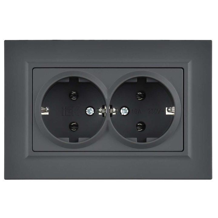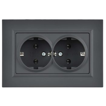 BRITE Розетка 2-местная с заземлением без защитных шторок плоская 16А в сборе РСПл12-3-БрГ графит IEK