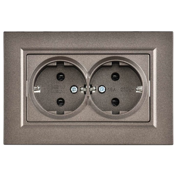 BRITE Розетка 2-местная с заземлением без защитных шторок плоская 16А в сборе РСПл12-3-БрТБ темная бронза IEK