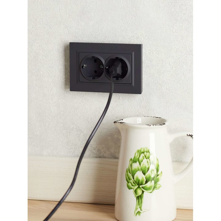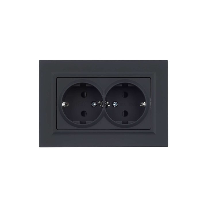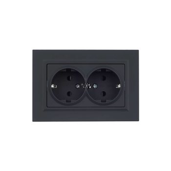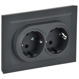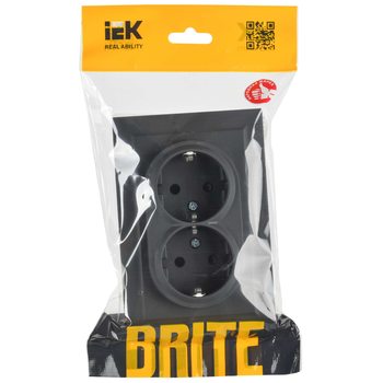 BRITE Розетка 2-местная с заземлением с защитными шторками 16А в сборе РСш12-3-БрГ графит IEK