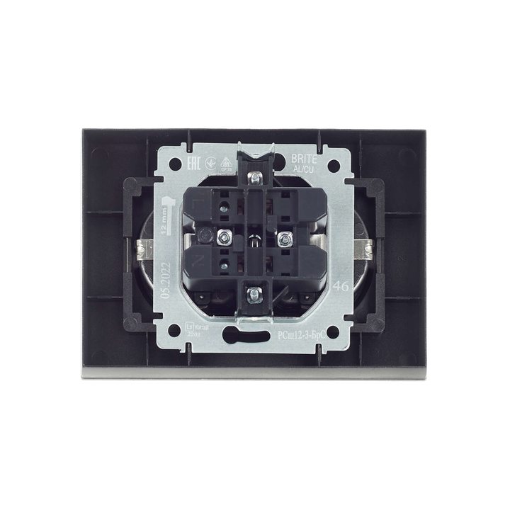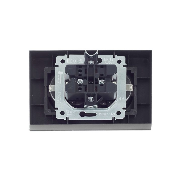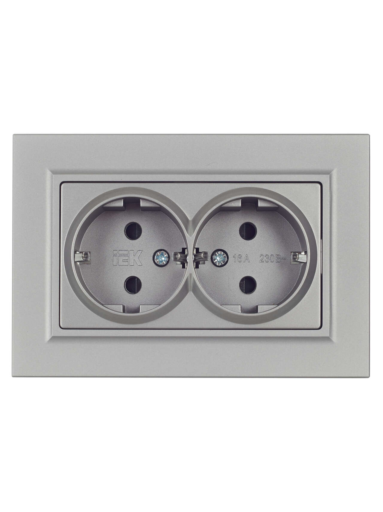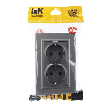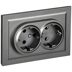 BRITE Розетка 2-местная с заземлением с защитными шторками 16А в сборе РСш12-3-БрС сталь IEK