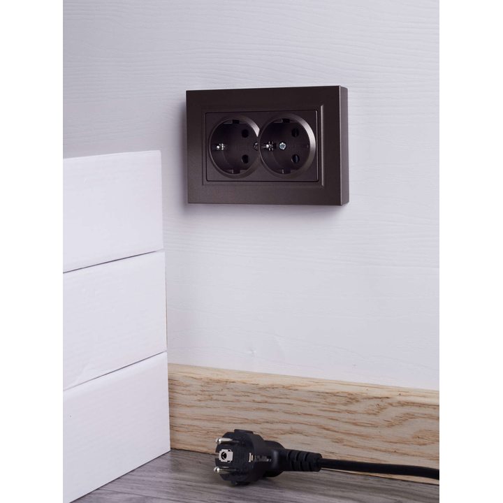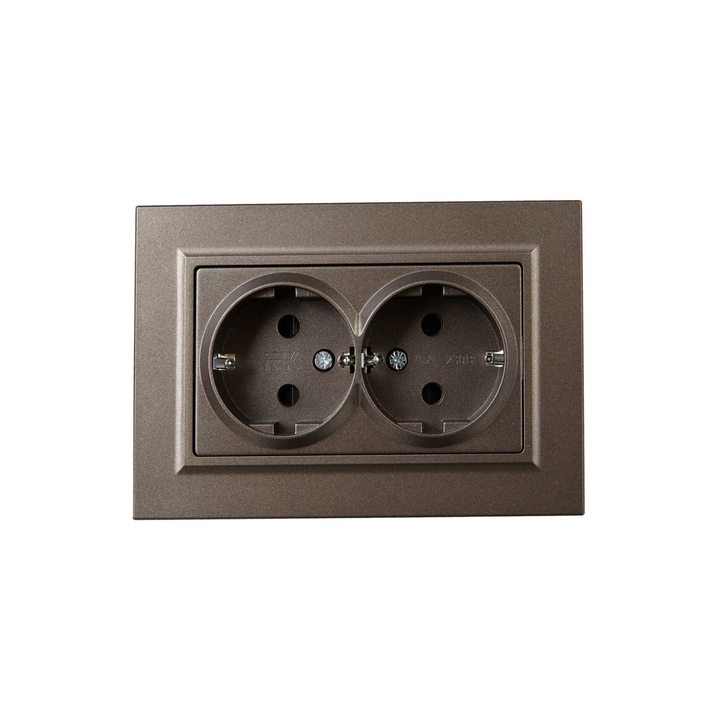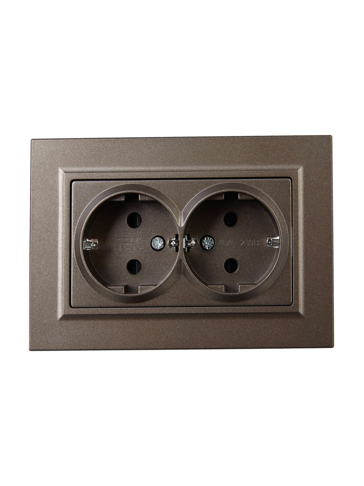 BRITE Розетка 2-местная с заземлением с защитными шторками 16А в сборе РСш12-3-БрТБ темная бронза IEK