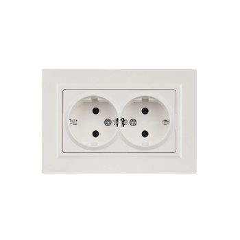 BRITE Розетка 2-местная с заземлением с защитными шторками 16А в сборе РСш12-3-БрЖ жемчуг IEK