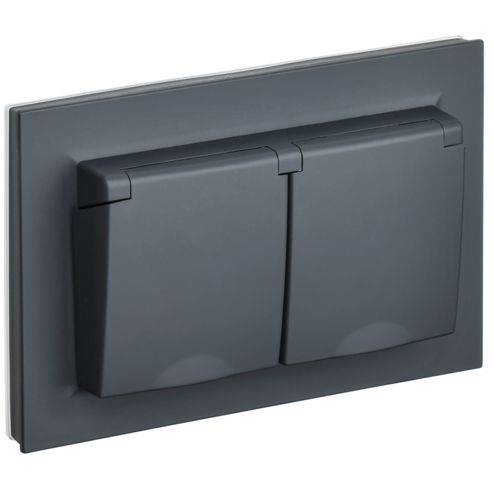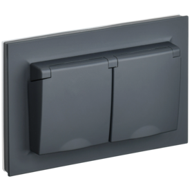 BRITE Розетка 2-местная с заземлением с защитными шторками и крышкой 16А в сборе IP44 РСбш12-3-44-БрГ графит IEK
