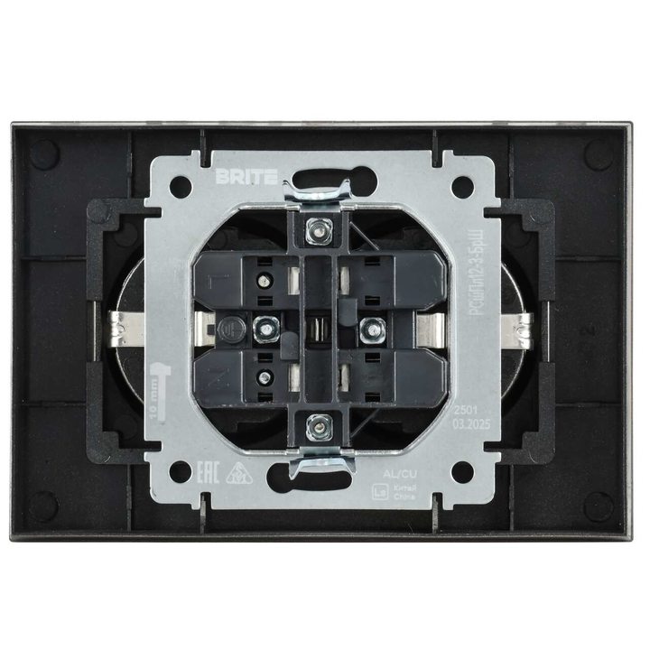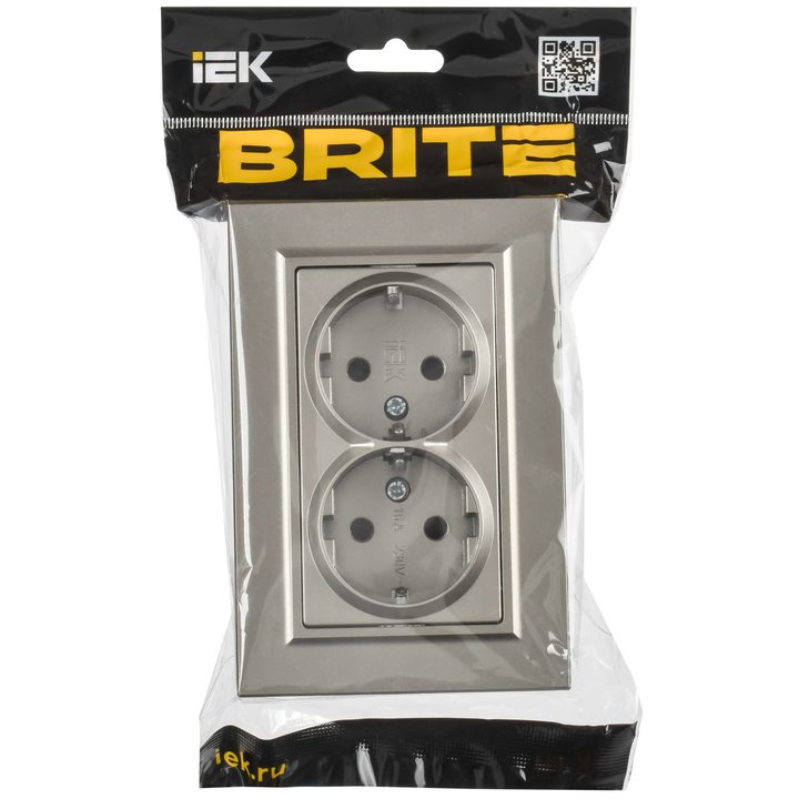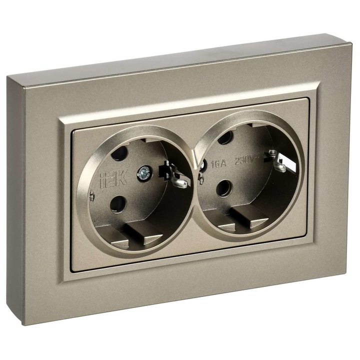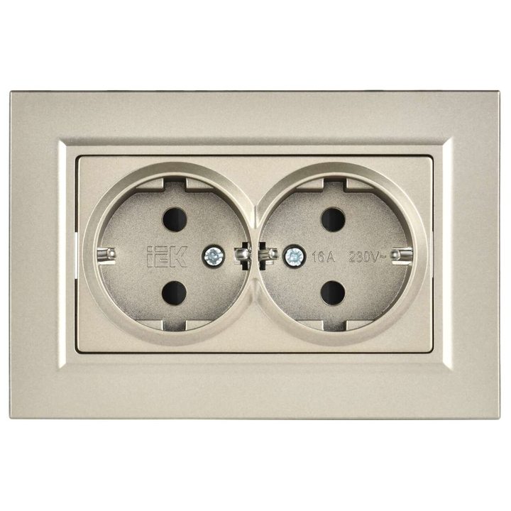 BRITE Розетка 2-местная с заземлением с защитными шторками плоская 16А в сборе РСшПл12-3-БрШ шампань IEK