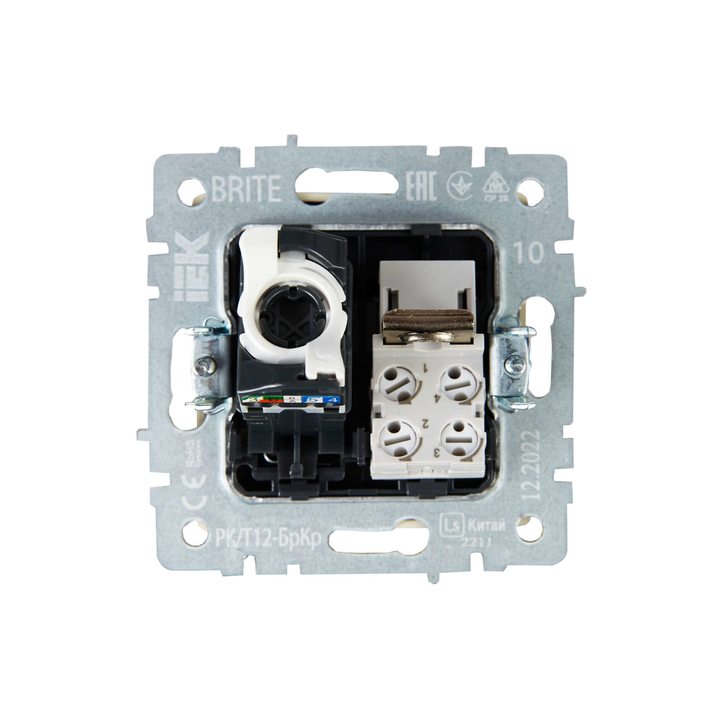 BRITE Розетка двойная RJ11+RJ45 кат.5E РК/Т12-БрКр бежевый IEK