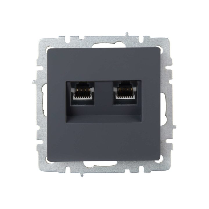 BRITE Розетка компьютерная двойная RJ45 кат.6 РК11-2-БрГ графит IEK