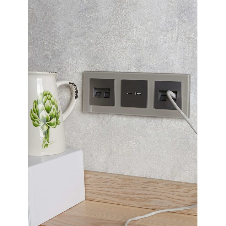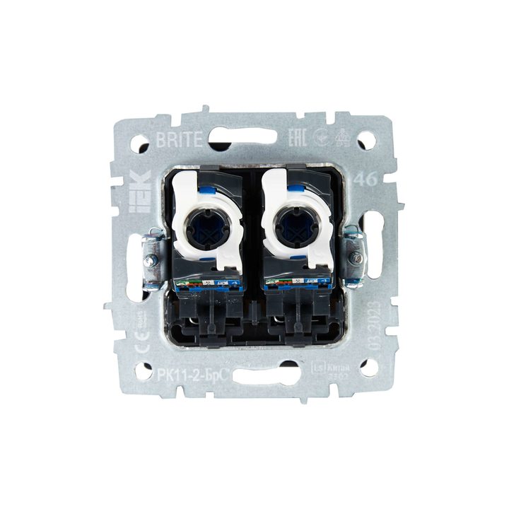 BRITE Розетка компьютерная двойная RJ45 кат.6 РК11-2-БрС сталь IEK