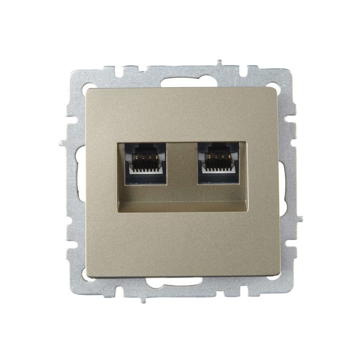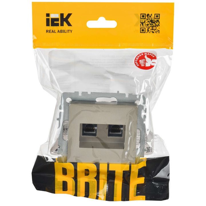 BRITE Розетка компьютерная двойная RJ45 кат.6 РК11-2-БрШ шампань IEK