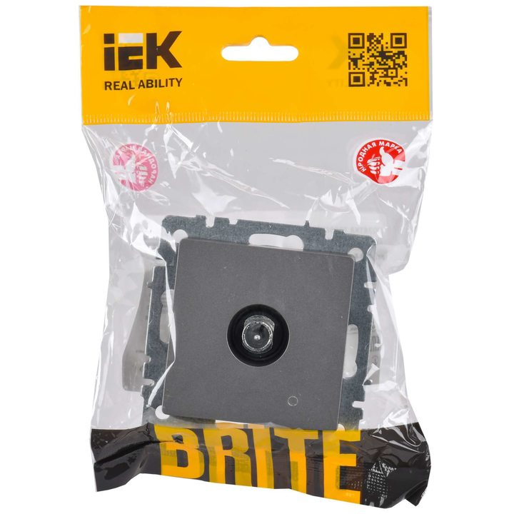 BRITE Розетка TV проходная РТВ10-0-БрС сталь IEK