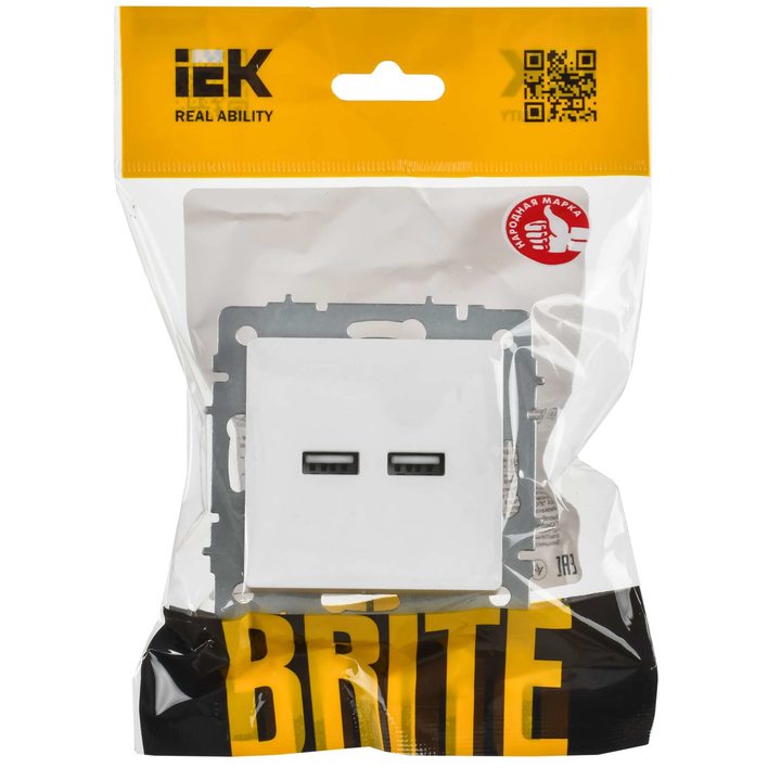 BRITE Розетка USB A+A 5В 3,1А РЮ10-1-БрАБ арктический белый IEK