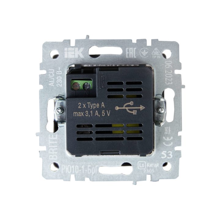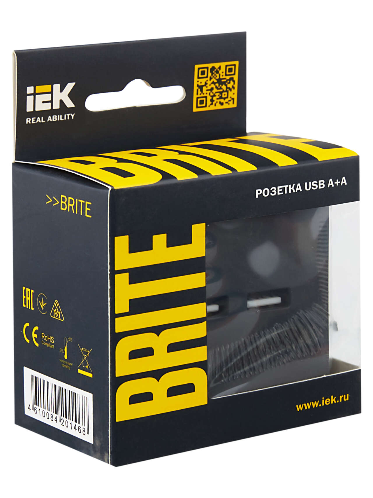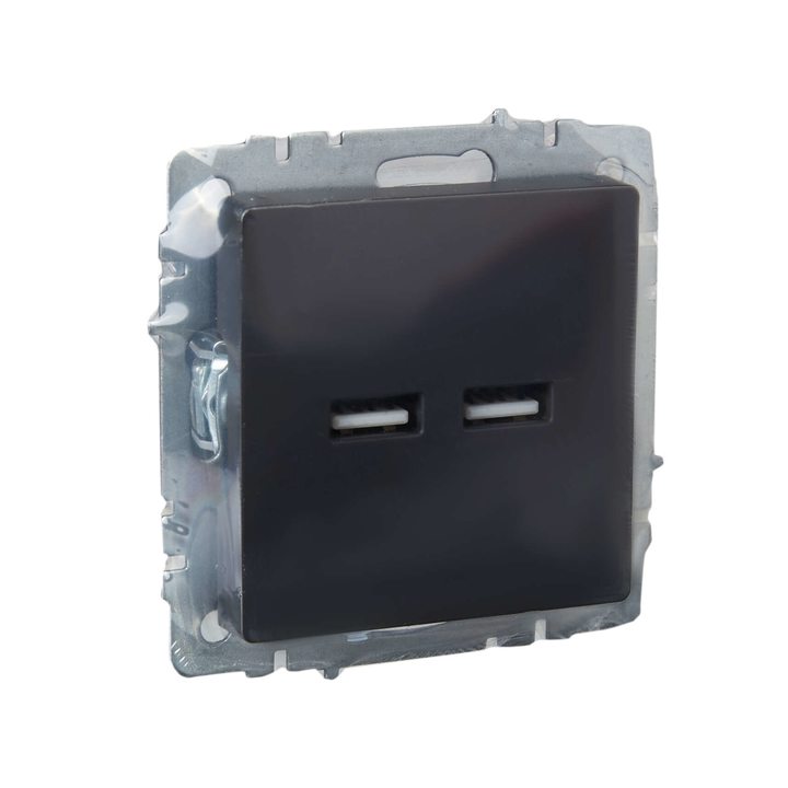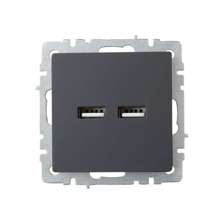 BRITE Розетка USB A+A 5В 3,1А РЮ10-1-БрГ графит IEK