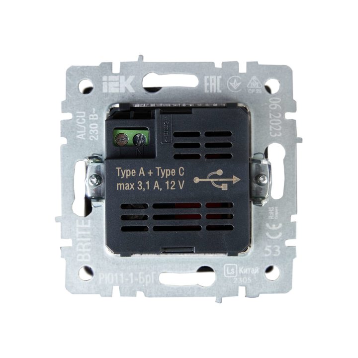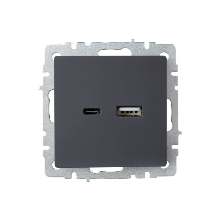 BRITE Розетка USB A+C 18Вт РЮ11-1-БрГ графит IEK