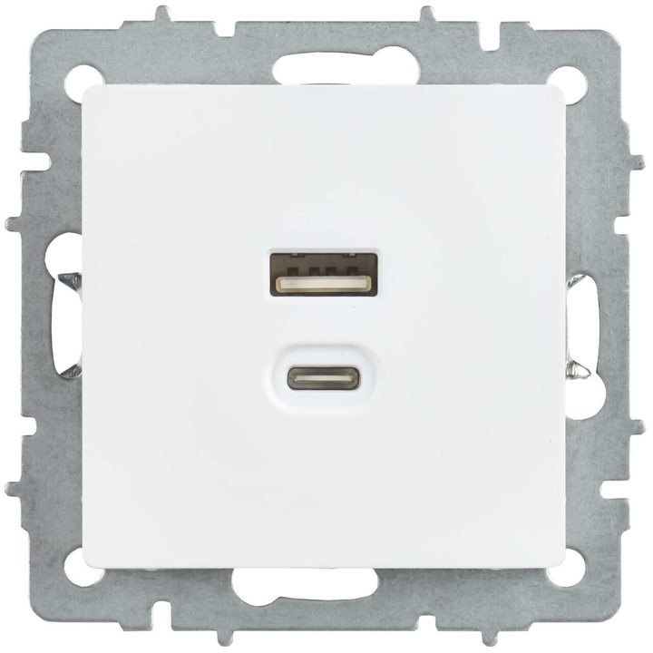BRITE Розетка USB A+C 45Вт высокоскоростная зарядка РЮ11-2-БрАБ арктический белый IEK