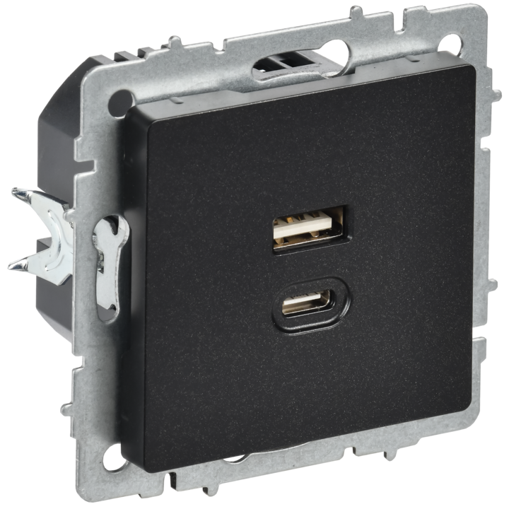 BRITE Розетка USB A+C 45Вт высокоскоростная зарядка РЮ11-2-БрЧ черный IEK