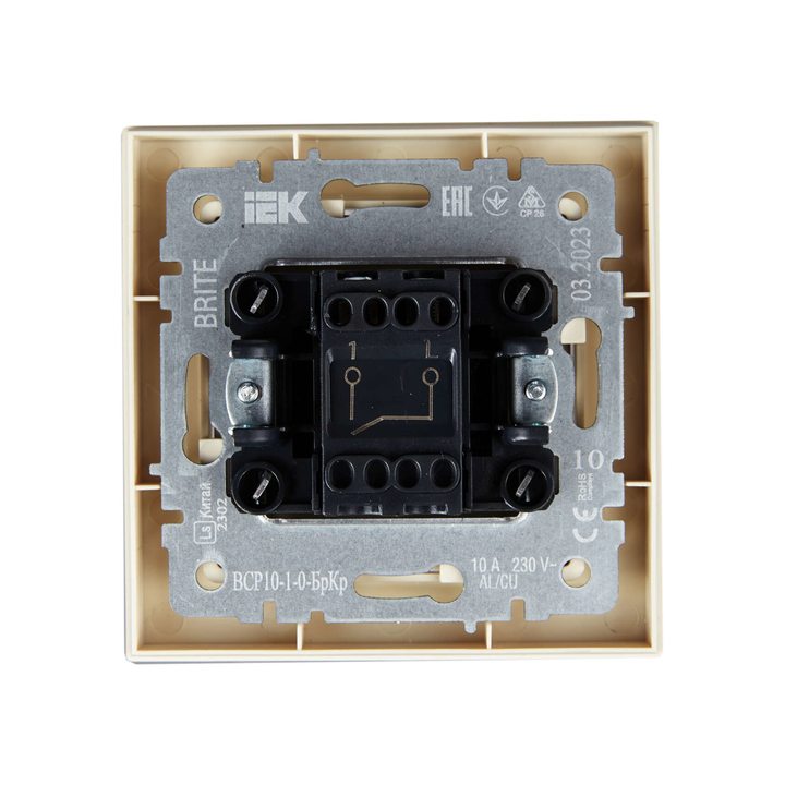 BRITE Выключатель 1-клавишный 10А в сборе ВСР10-1-0-БрКр бежевый IEK