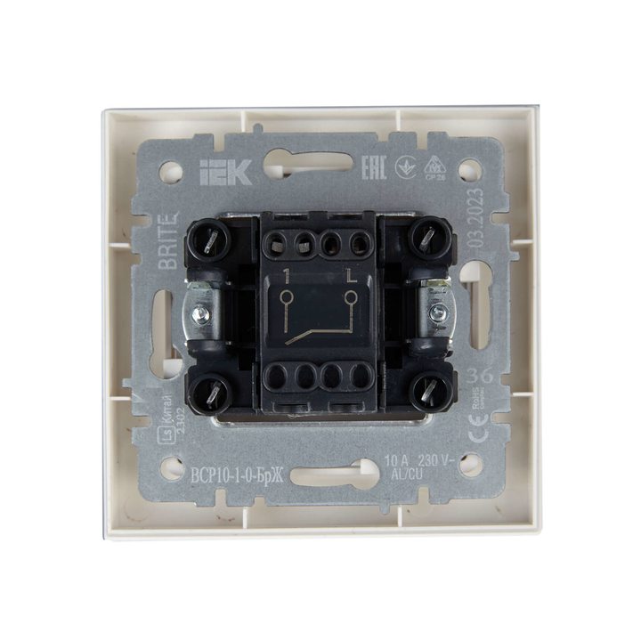 BRITE Выключатель 1-клавишный 10А в сборе ВСР10-1-0-БрЖ жемчуг IEK