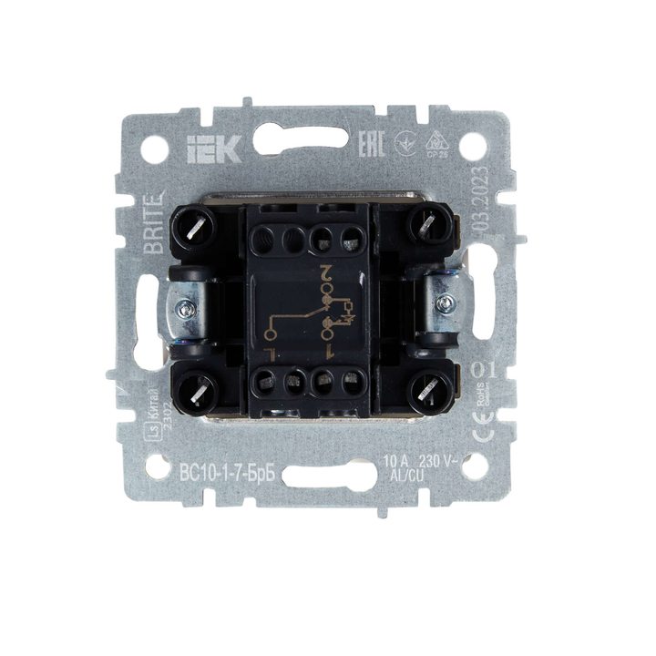 BRITE Выключатель 1-клавишный проходной с индикацией 10А ВС10-1-7-БрБ белый IEK