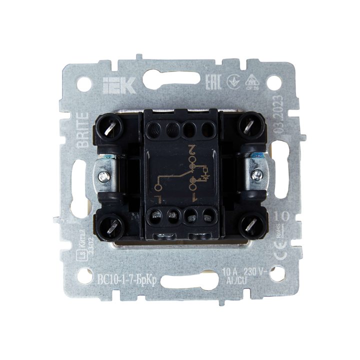 BRITE Выключатель 1-клавишный проходной с индикацией 10А ВС10-1-7-БрКр бежевый IEK