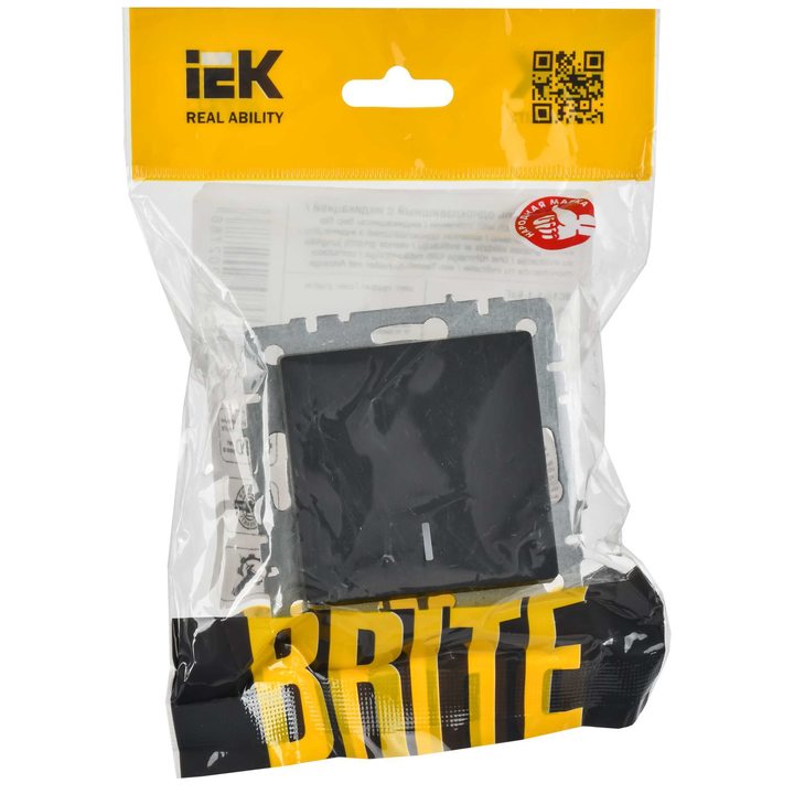 BRITE Выключатель 1-клавишный с индикацией 10А ВС10-1-1-БрГ графит IEK