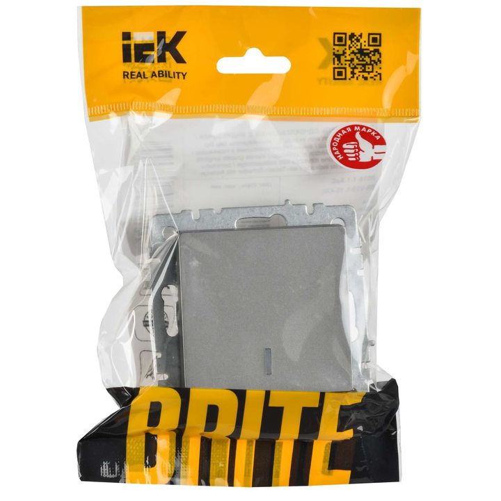BRITE Выключатель 1-клавишный с индикацией 10А ВС10-1-1-БрС сталь IEK