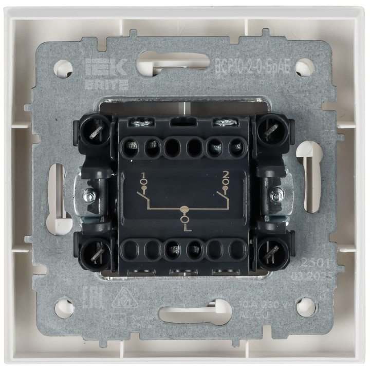 BRITE Выключатель 2-клавишный 10А в сборе ВСР10-2-0-БрАБ арктический белый IEK