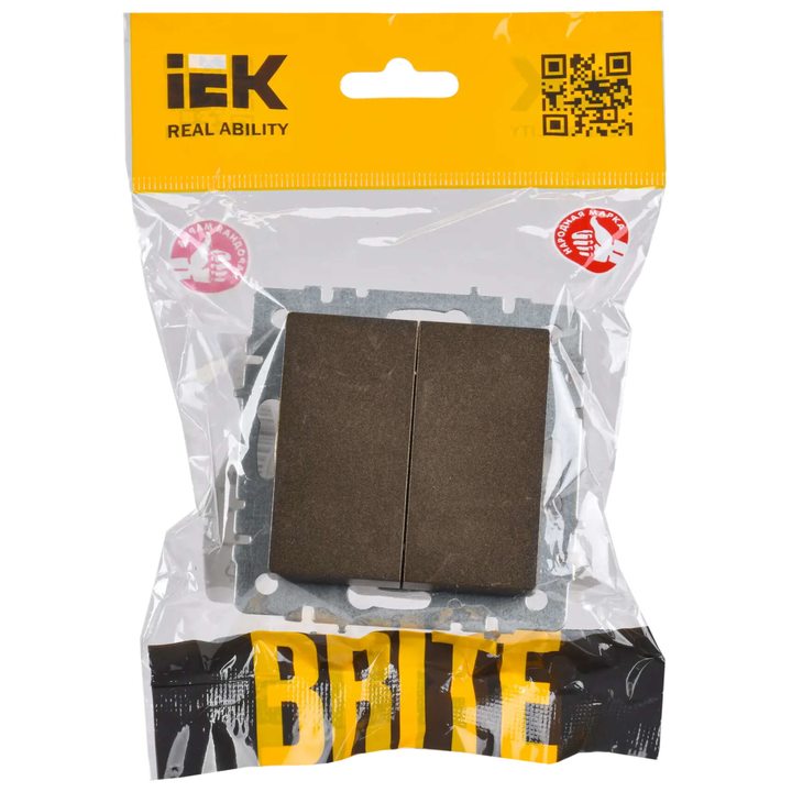 BRITE Выключатель 2-клавишный проходной 10А ВС10-2-6-БрТБ темная бронза IEK