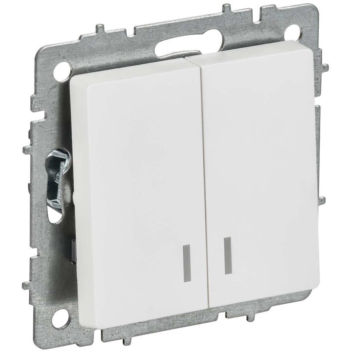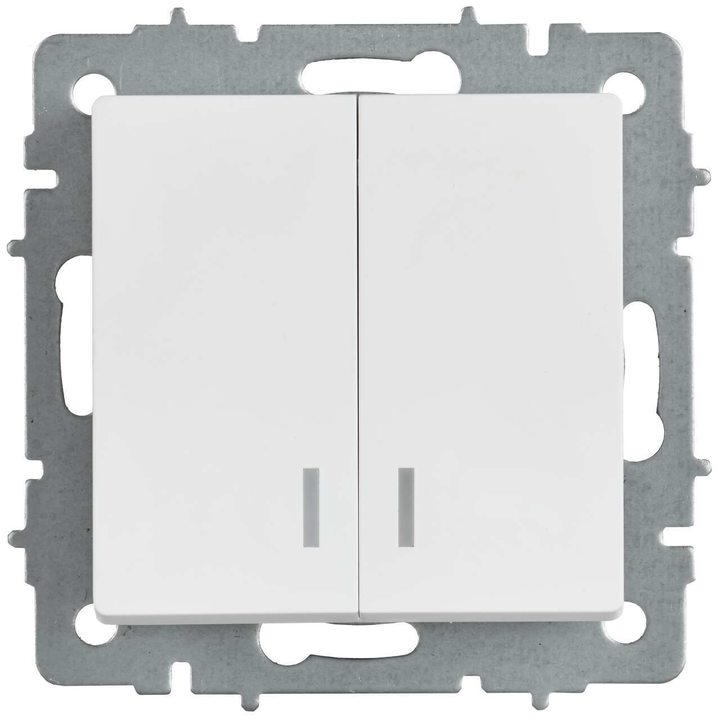 BRITE Выключатель 2-клавишный с индикацией 10А ВС10-2-1-БрАБ арктический белый IEK