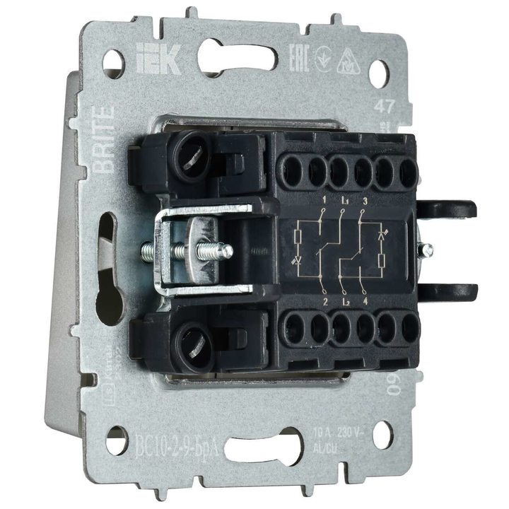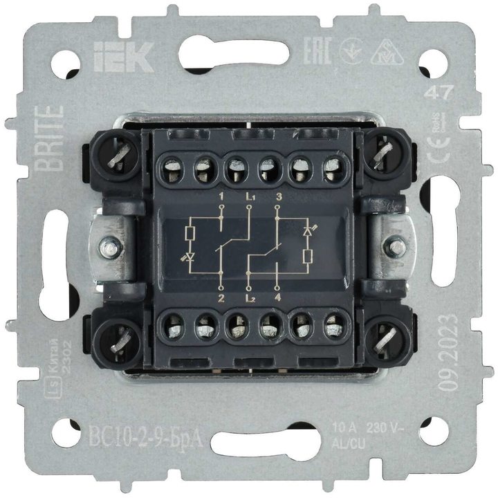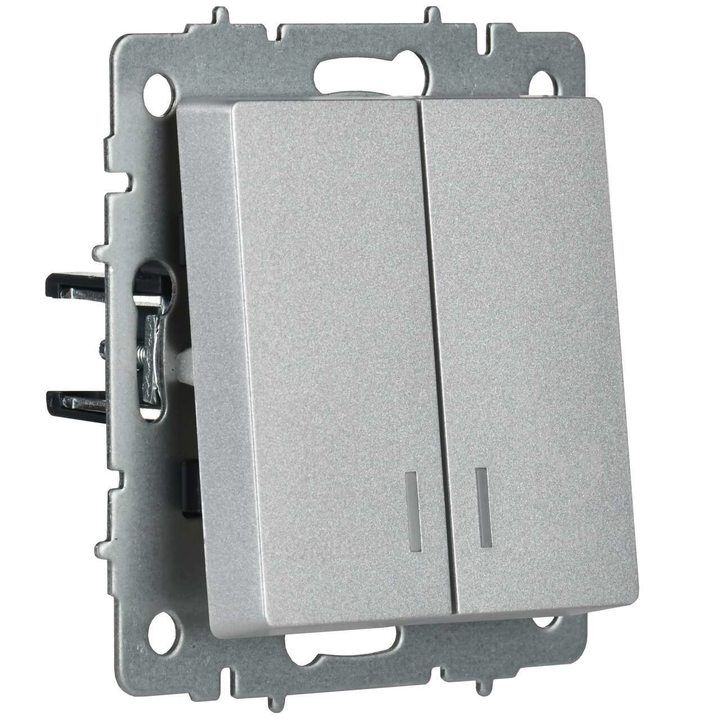 BRITE Выключатель 2-клавишный с индикацией для отелей 10А ВС10-2-9-БрА алюминий IEK