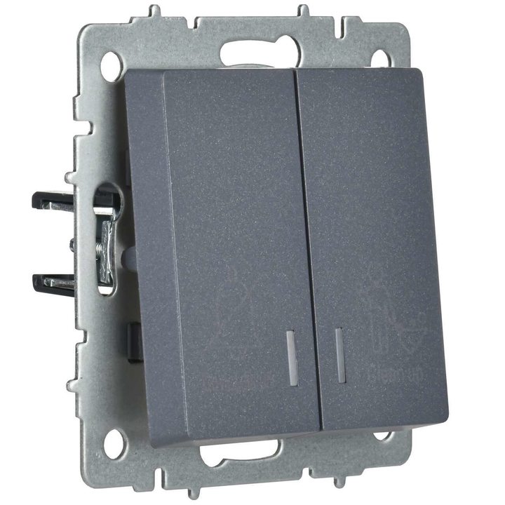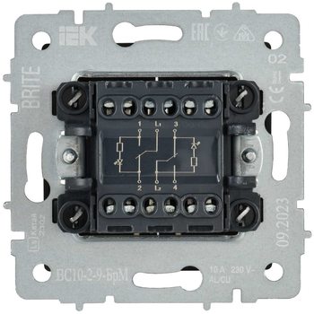 BRITE Выключатель 2-клавишный с индикацией для отелей 10А ВС10-2-9-БрМ маренго IEK