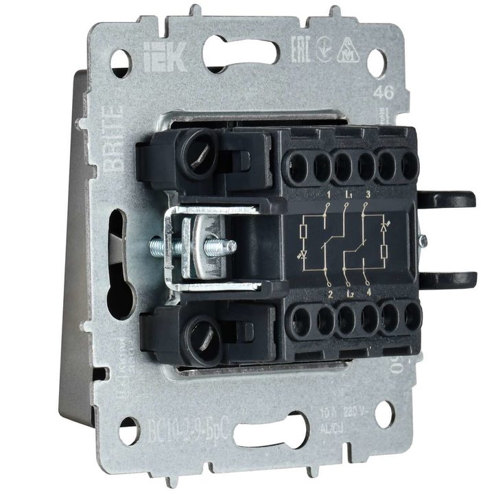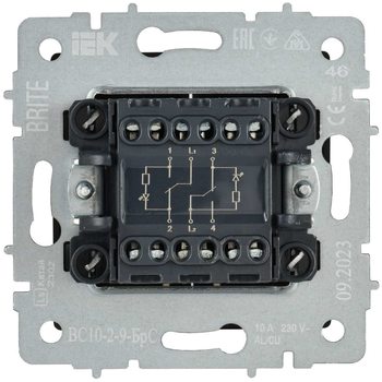 BRITE Выключатель 2-клавишный с индикацией для отелей 10А ВС10-2-9-БрС сталь IEK
