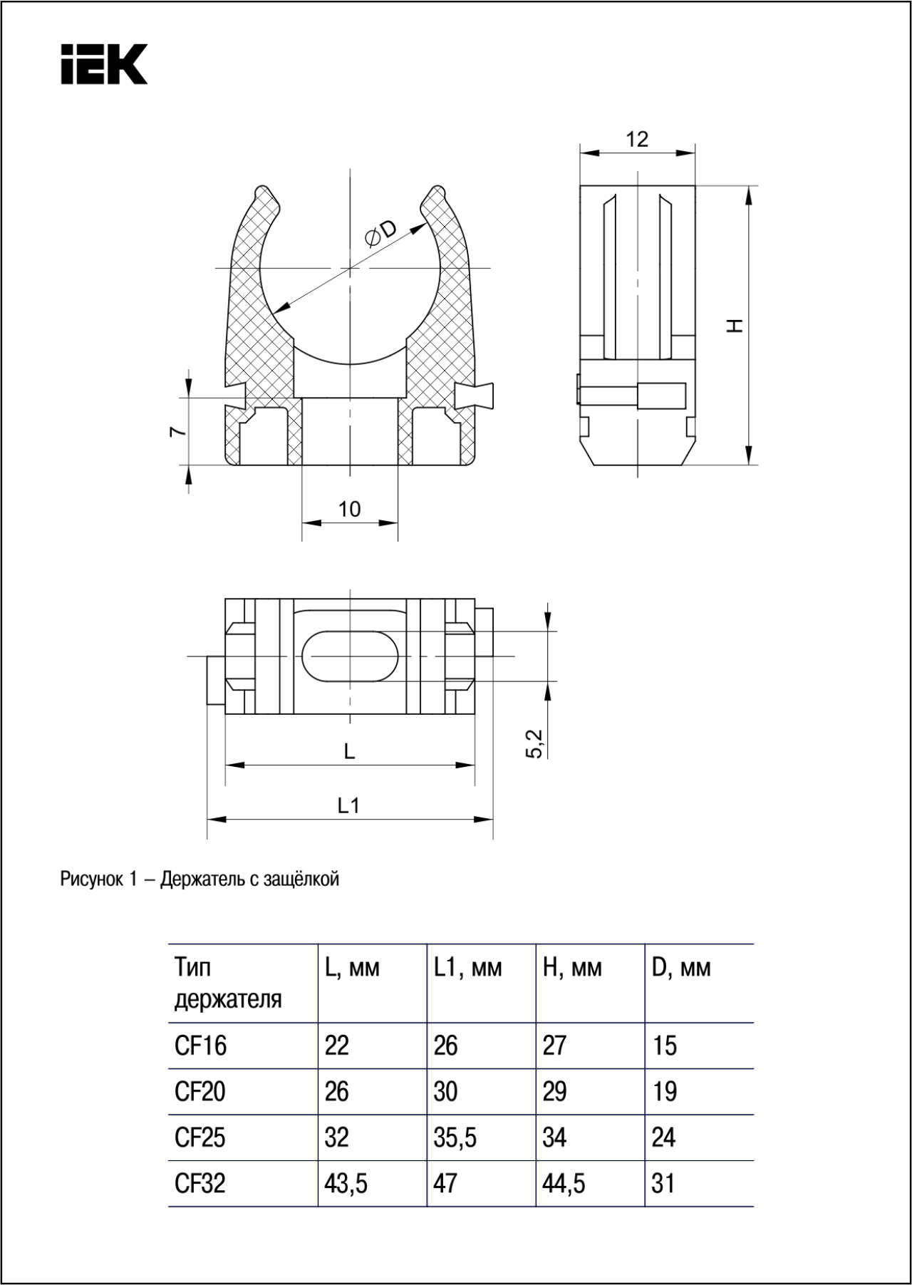 Держатель с защелкой CF16 черн. (уп.10шт) ИЭК