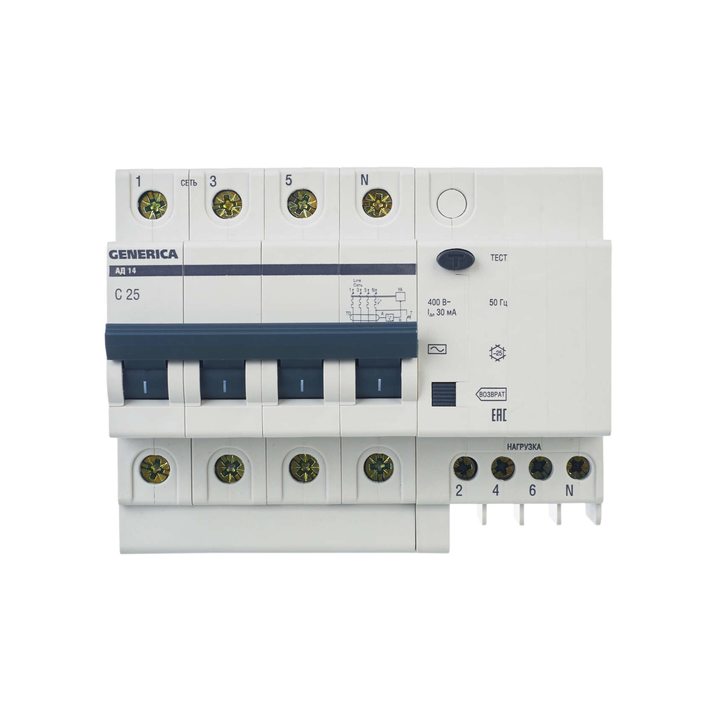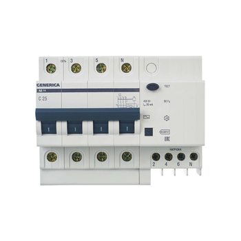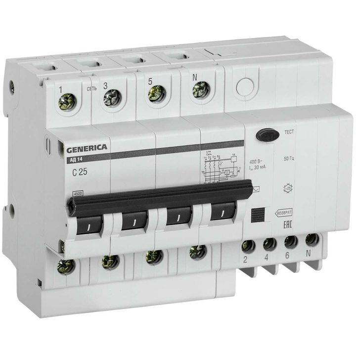 Выключатель автоматический дифференциального тока 4п 25А 30мА АД14 GENERICA IEK MAD15-4-025-C-030