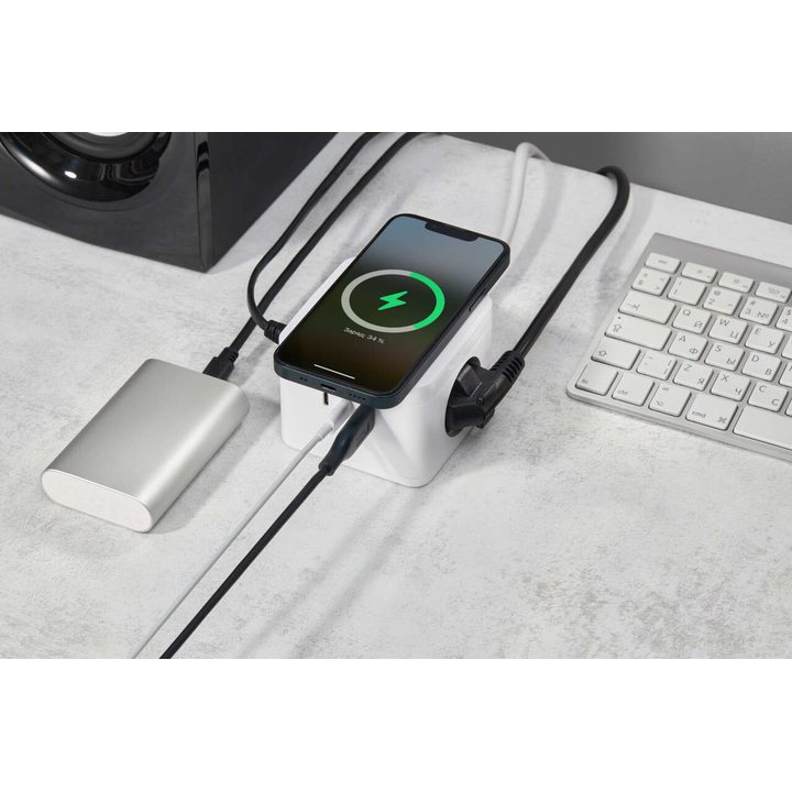 DOMINIC Удлинитель с беспроводной зарядкой 10Вт У02К 2 места 2P+PE 1,3м 3х1,0мм2 16А/250В USB A+C белый IEK
