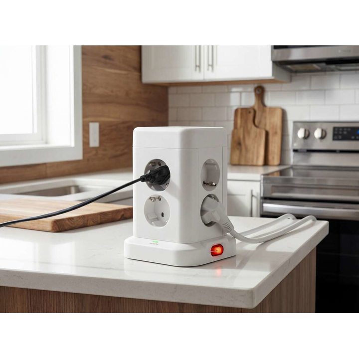 - 8 розеток с заземлением и защитными шторками — безопасно и удобно.