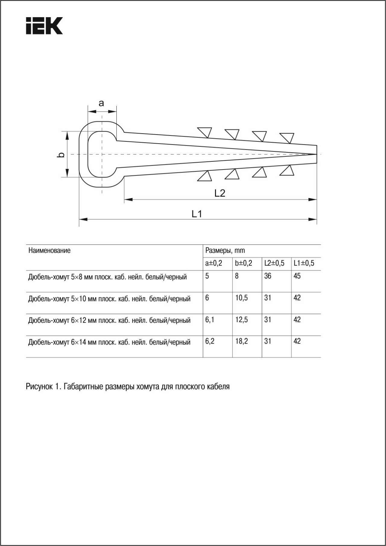 Дюбель-хомут 6х14мм для плоского кабеля нейлон бел. (уп.100шт) IEK UDH14-06-14-100-K01