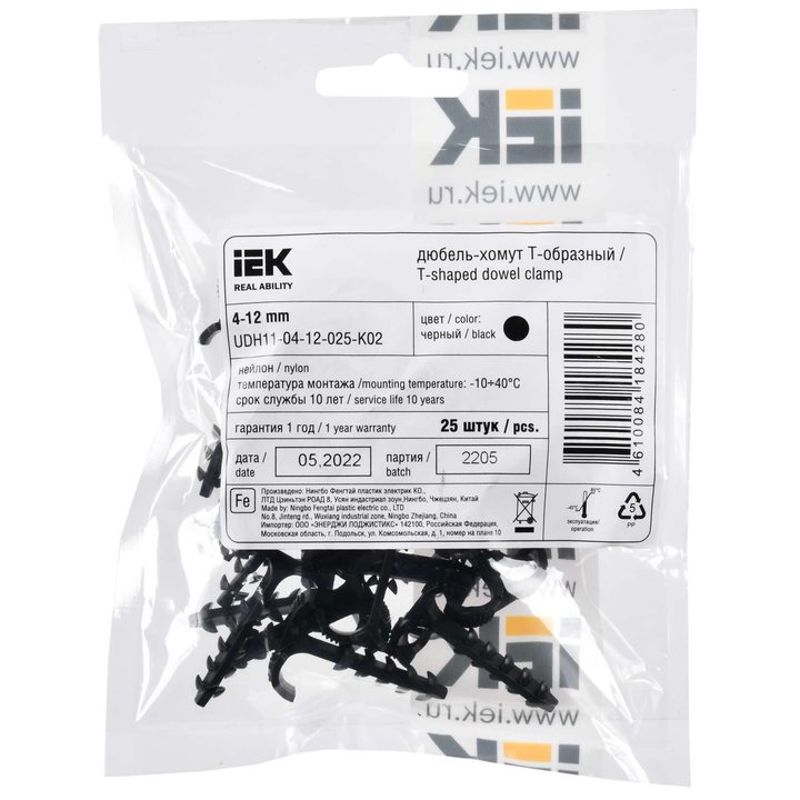 Дюбель-хомут Т-образный 4-12мм нейлон черный (25шт/упак) IEK
