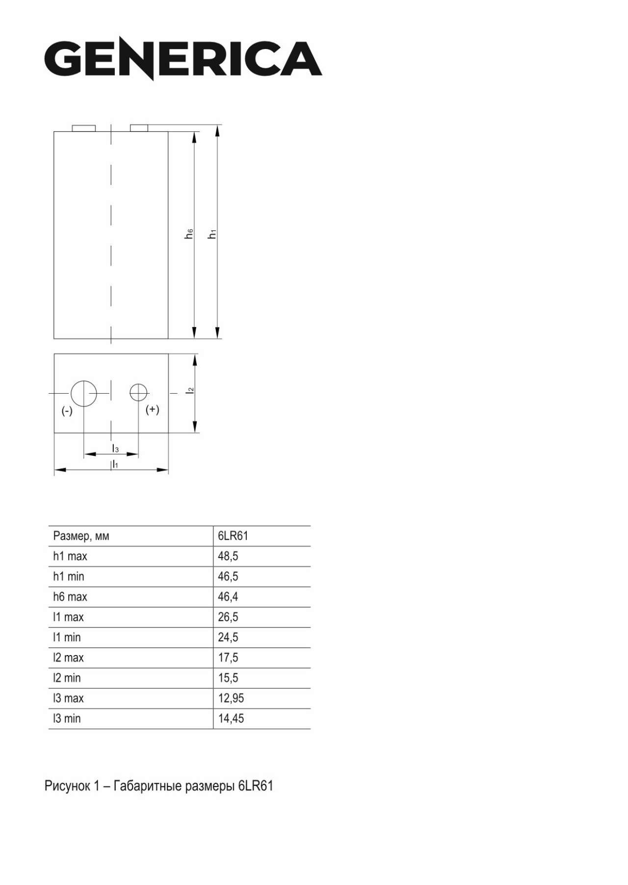Элемент питания алкалиновый крона 6LR61 9В Alkaline (блист.1шт) GENERICA ABT-6LR619V-ST-L02-G