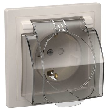 Розетка 1-м СП Кварта 16А РСбш11-3-ККБ-44 с защ. крышкой защ. шторки с заземл. керамика IP44 бел. ИЭК