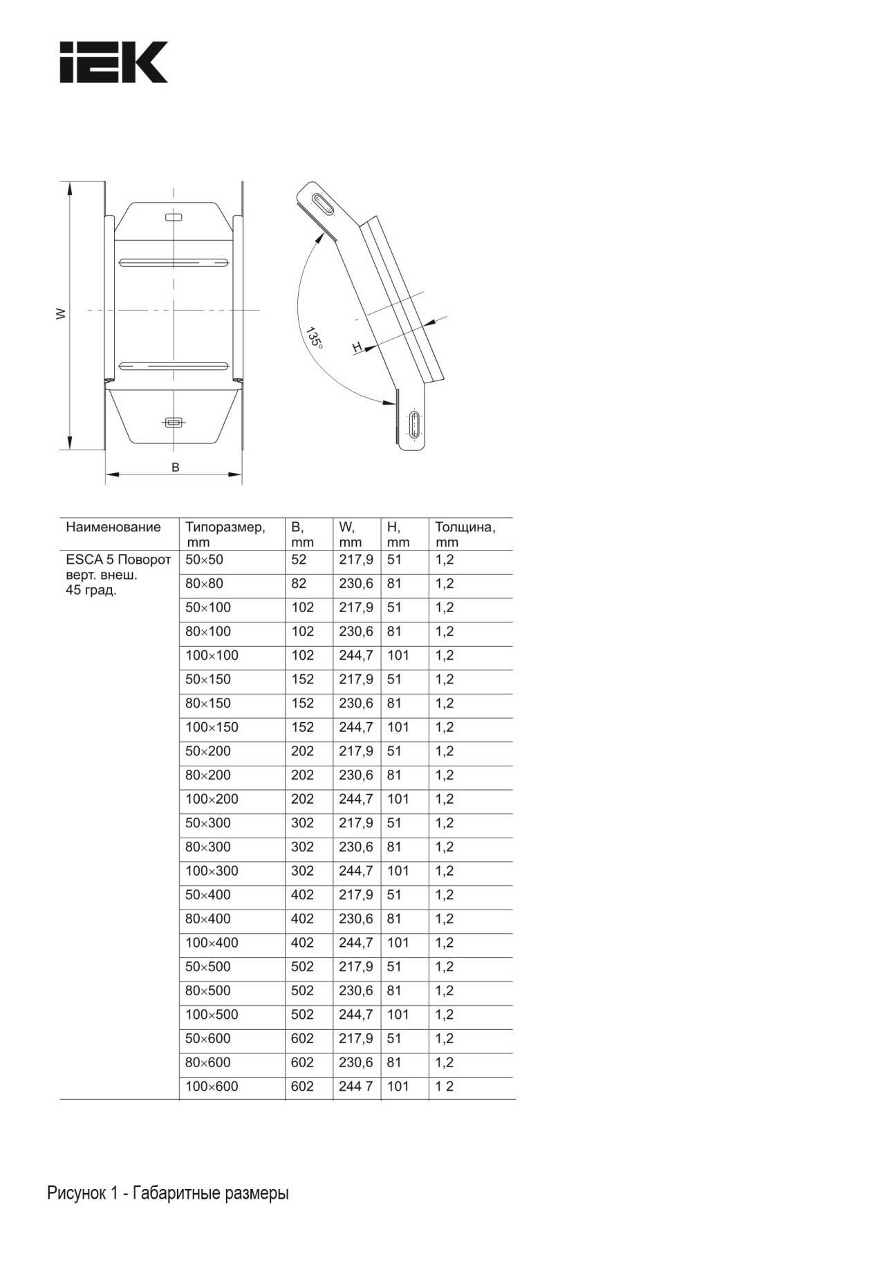 ESCA 5 Поворот вертикальный внешний 45град 80х150-1,2 HDZ IEK