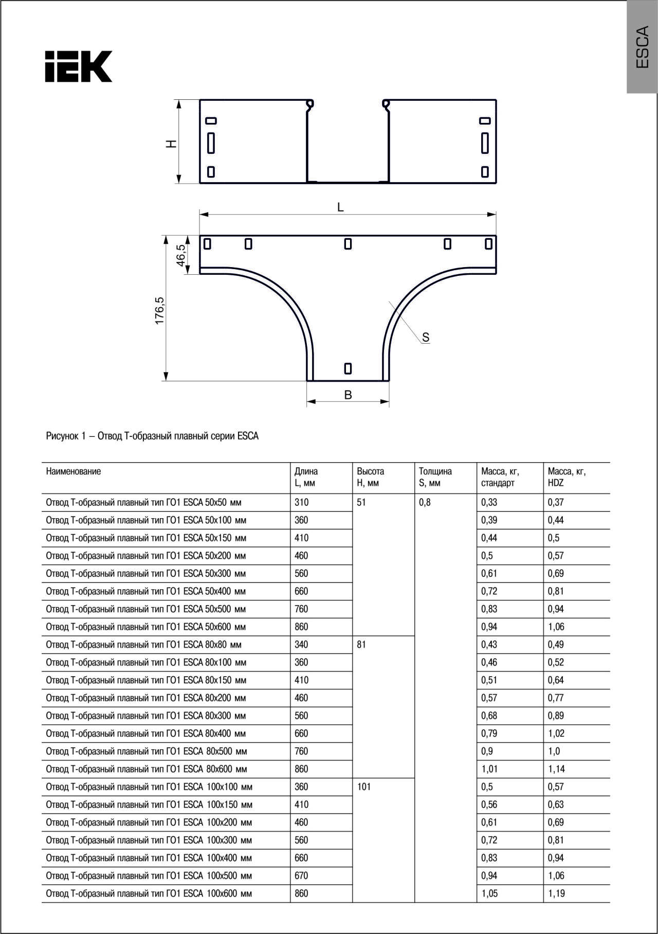 ESCA Отвод Т-образный плавный тип Г01 50х400мм IEK