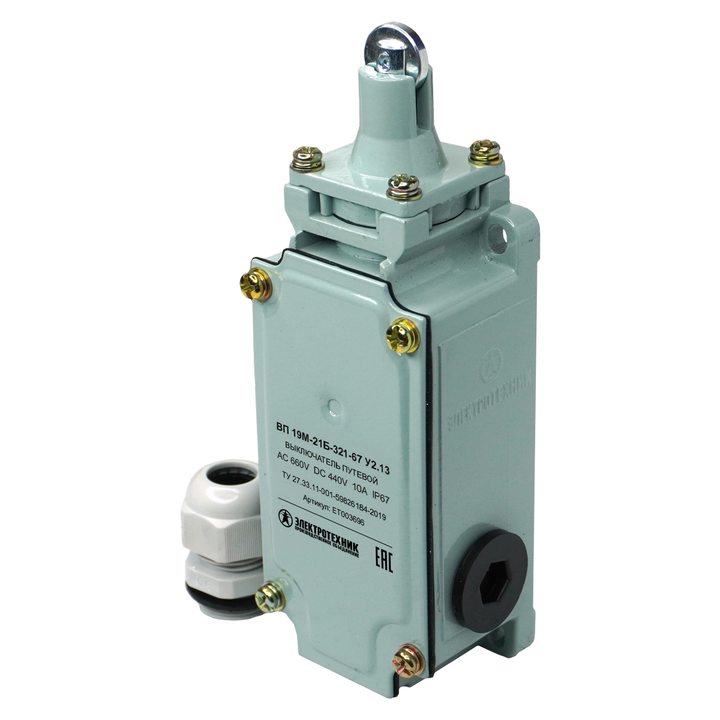 Выключатели путевые серии ВП 19 предназначены для применения в электрических цепях управления, сигнализации и контроля относительного положения подвижных частей механизма в пространстве.