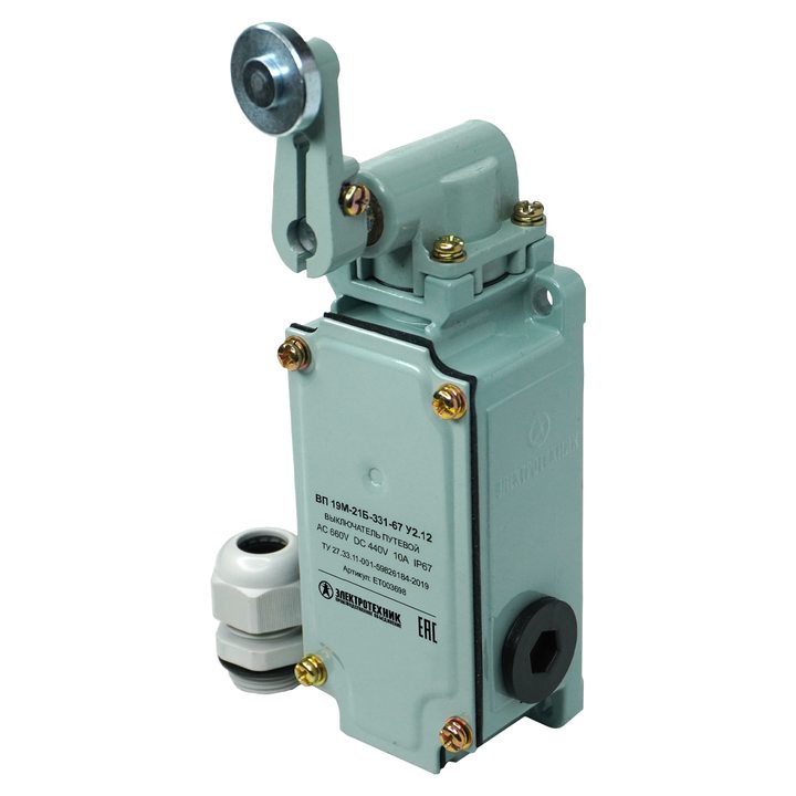 Выключатели путевые серии ВП 19 предназначены для применения в электрических цепях управления, сигнализации и контроля относительного положения подвижных частей механизма в пространстве.